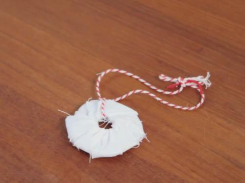 Diese Weihnachtshänger sind aus Pappe, einem alten Bettlaken und ein wenig Kordel.