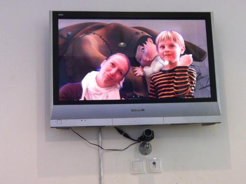Hinter uns ist eine blaue Wand, vor uns die Videokamera. Es lief Madagascar – und schwups waren wir mitten drin im Film.