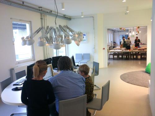 Hier nochmal aus einer anderen Sicht. Die Idee mit den Lampen fand ich übrigens super. Überhaupt hat das Kinderkunsthaus tolle Sponsoren für die Ausstattung gewinnen können. Viele Möbel sind von Vitra – sieht wirklich klasse aus.