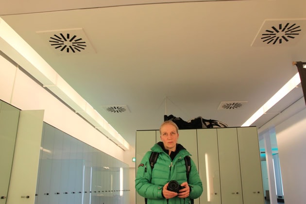 Nach dem Training – und in Gedanken schon zuhause. Zeit zum Duschen habe ich nicht, sonst sind die Kinder schon im Bett.