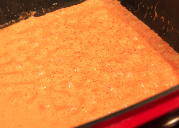 Jetzt seht ihr schon deutlich, wie sich das Öl absetzt. Dann umrühren – und wieder warten, bis sich die Fettschicht trennt.