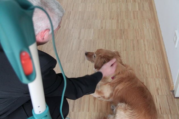 Überhaupt ist er durch Nichts aus der Ruhe zu bringen und auch schon auf Du und Du mit unserem eigentlich Staubsaugerphobischen Hund.