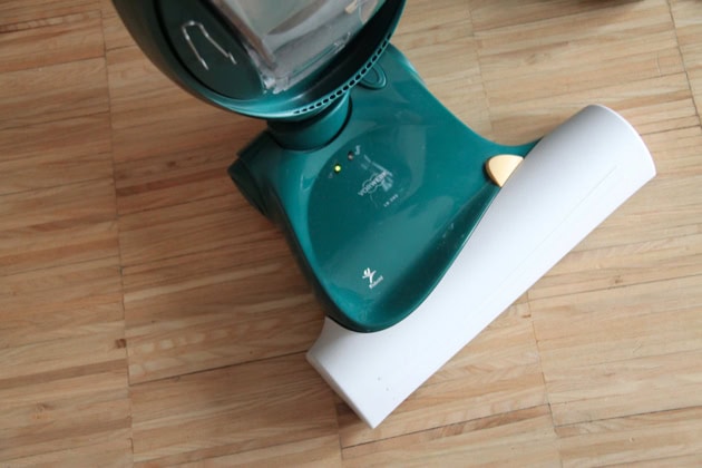 Beim Teppichboden habe ich keine Fragen mehr, also saugen wir mal einen Quadratmeter meines Holzbodens, der eigentlich sauber aussieht.