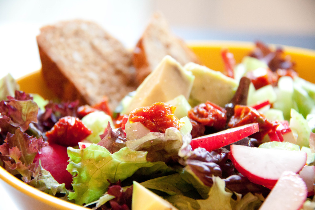 Miriams Salat frisch vom Feld mit challengetauglichem Vegan for fit Brot