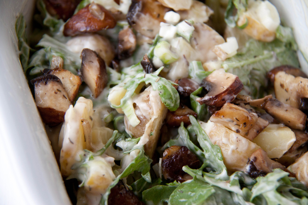 Veganer Kartoffelsalat mit Knoblauchchampignons