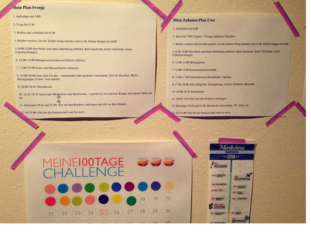 Weil ich mit dem besten Mann der Welt und dazu mit einem sehr kreativen Mann verheiratet bin, der nie genug Struktur haben kann, hat der sich auch gleich einen Plan gemacht. Was dazu führte, dass wir beide VIEL produktiver waren. VIEL mehr geschafft haben. Und vor allem: keine Entschuldigungen mehr hatten. Nicht, weil man sich sklavisch an das halten muss, was man einmal aufgeschrieben hat. Sondern weil der eigene Kopf einen wunderbar austrickst.