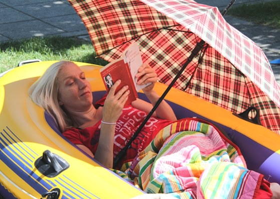 Irgendwie war das so ein ganz spezieller moment in time. Mittagszeit, in der Siedlung war es total ruhig, die Kinder waren beschäftigt und ich habe mich einfach in das Schlauchboot gelegt, das in der Sonne vom letzten Einsatz unter dem Rasensprenger trocknete. Und gelesen.