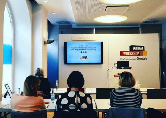 Ich nehme gerade an den kostenlosen Digital Workshops von Google in München teil. Die habe ich zufällig entdeckt, weil auf dem Weg zu meinem Edeka ein fahrbares Plakat am Straßenrand stand.
