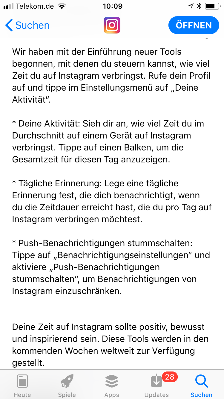 Noch eins, weil ich es sehr bezeichnend fand. Als ich in meiner Sommer-Social-Pause auf eine wichtige Nachricht wartete, musste ich einmal kurz die Insta App installieren. Daraufhin wurde mir folgende Benachrichtigung angezeigt.